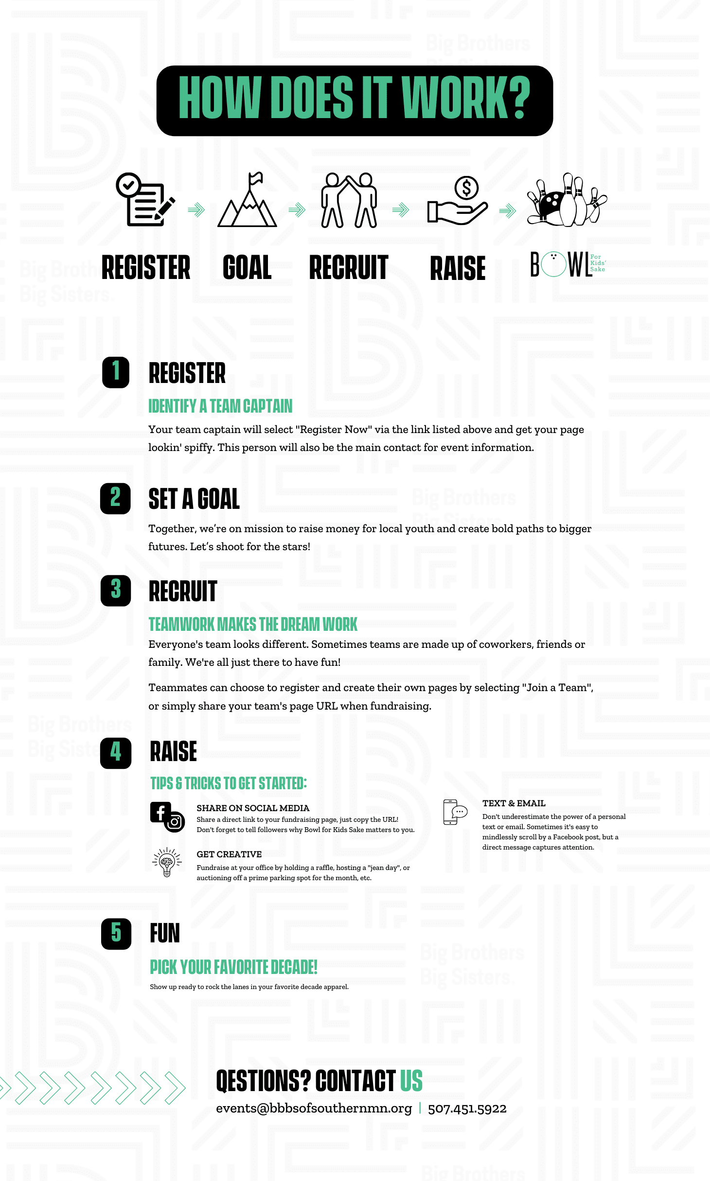 Bowl for Kids' Sake is a fun and easy way for your company, friends, and family to support the game-changing mission of Big Brothers Big Sisters. Just form your team, raise funds for youth mentoring, and celebrate together at the event!